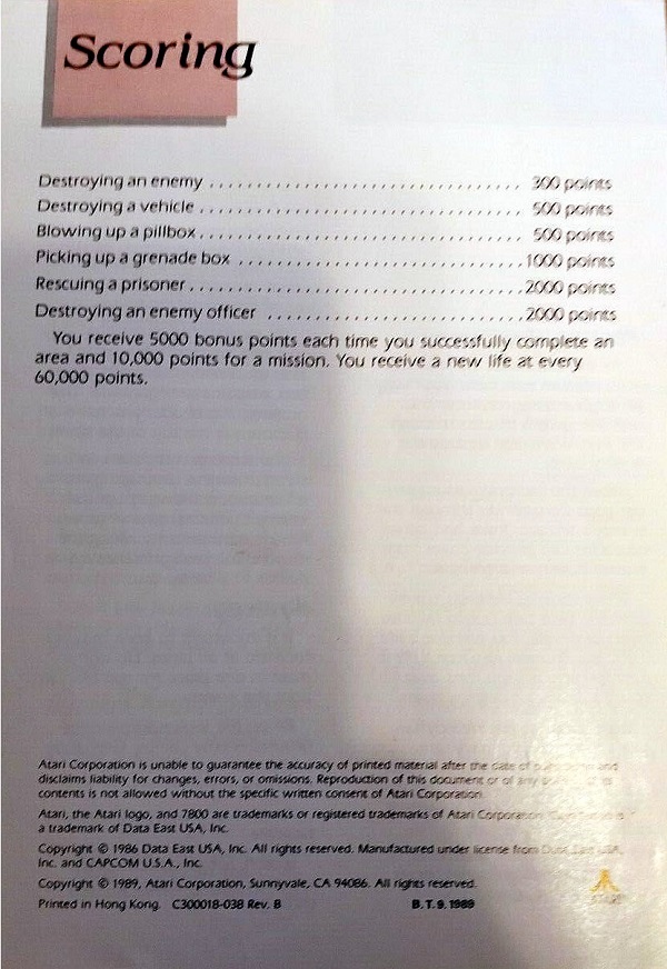 Commando Manual A ©1989, white, C300018-038 on back, 4 pages, 5 x 7”, Printed in Hong Kong, Rev B, “B.T.9.1989” right of product number