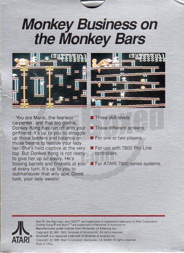 2) ©1988, grey box, “New” sticker in lower right corner, Printed in Hong Kong/Made in China, standard flap style box Front