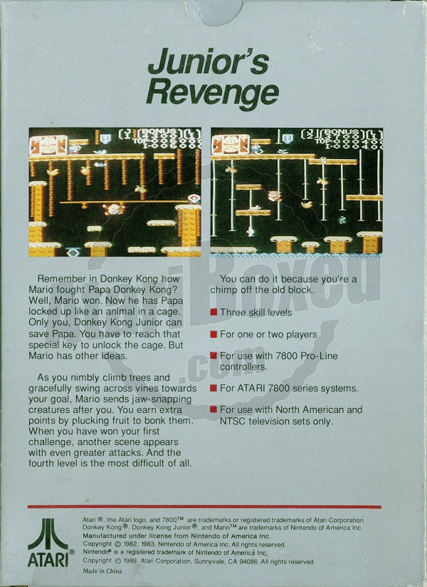 2) ©1988, grey box, “New” sticker in lower right corner, Printed in Hong Kong/Made in China, standard flap style box Front