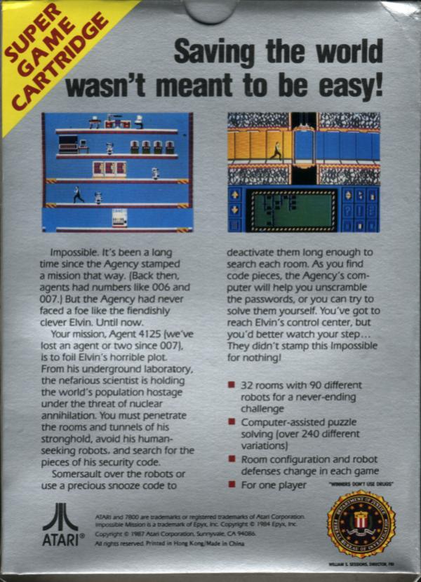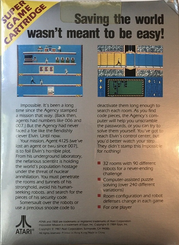 1) ©1987, grey box, “New” sticker in lower right corner, Atari advantage sticker on box, Printed in Hong Kong/Made in China, standard flap style box
