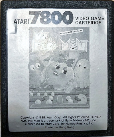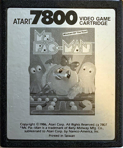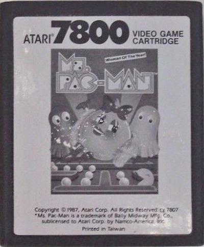 Ms. Pac-Man Cartridges version a)* R PicGr1 ©1986, CART2?, ML: “Printed in Taiwan”