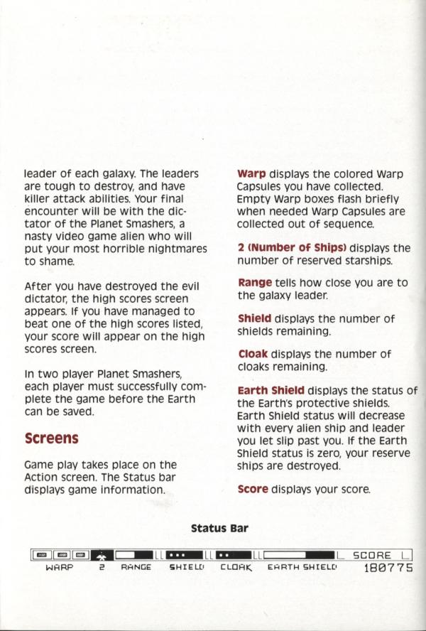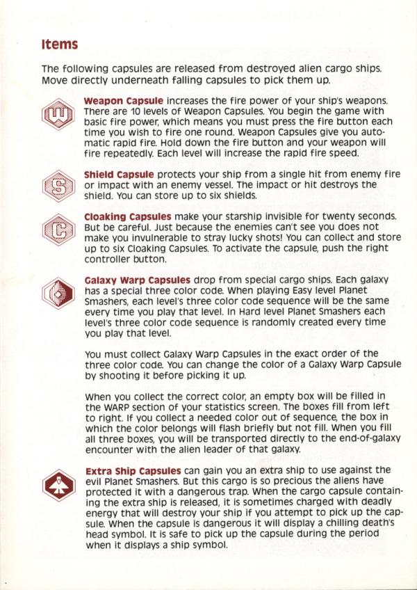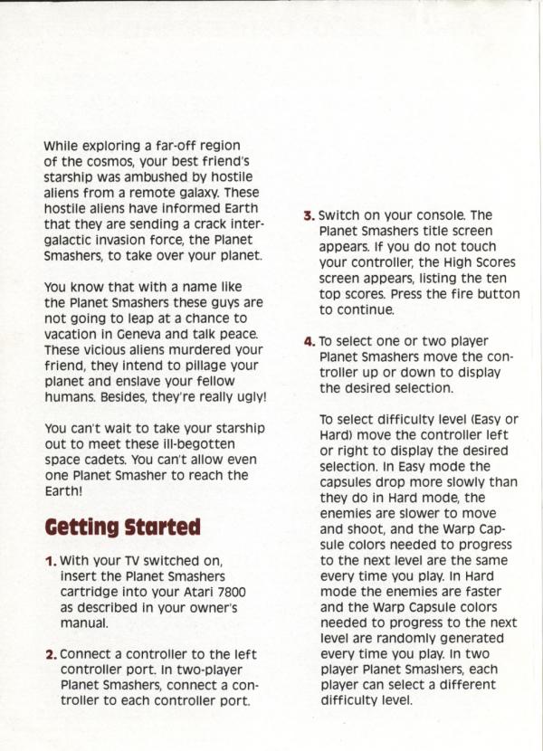 Planet Smashers Manual B ©1990, white, C300018-068 on back, 10 pages, 5 x 7”, no Printed, Rev A, “G.C.8.1991” left of product number