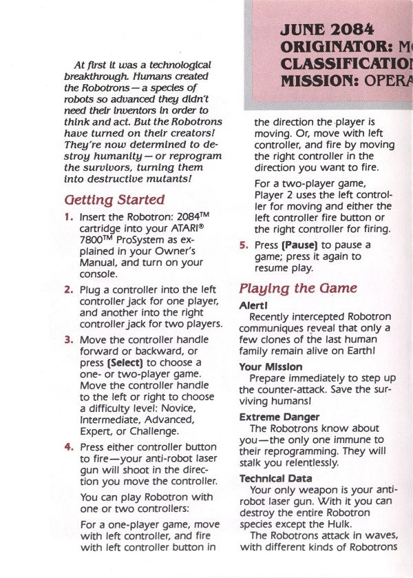 Robotron: 2084 Manual B [ Home ] [ Up ]