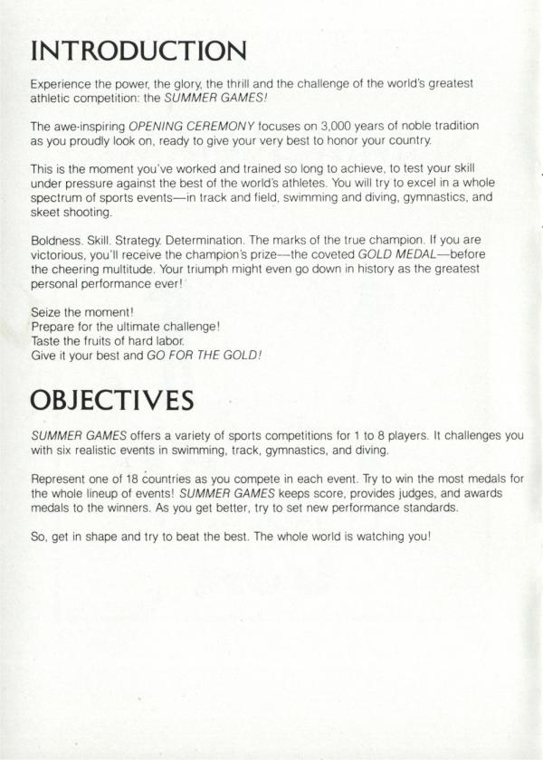 Summer Games Manuals [ Home ] [ Up ]