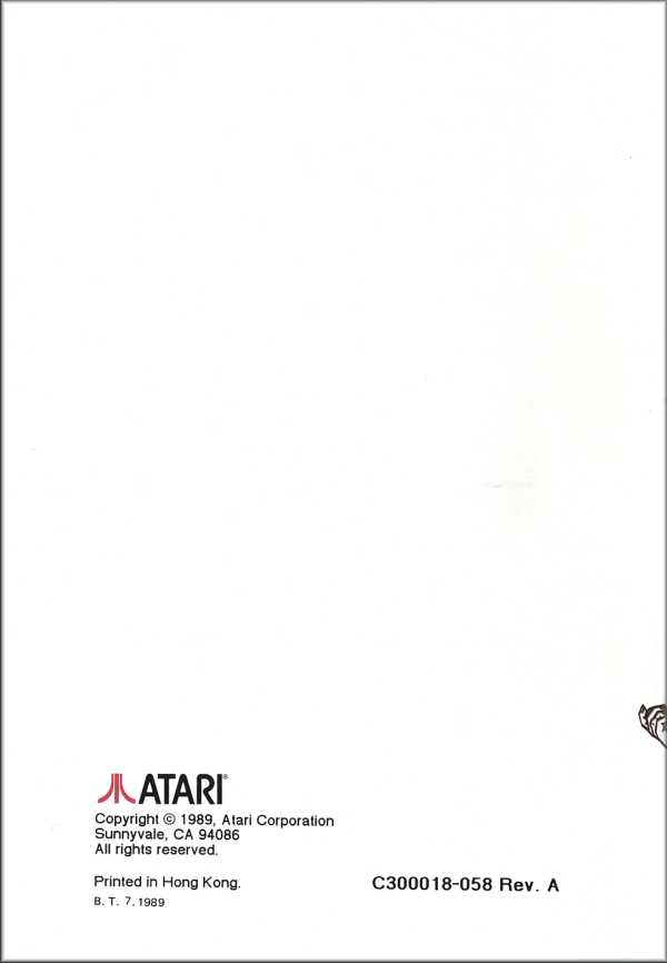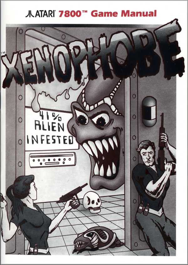 Xenophobe Manual A ©1989, white, C300018-058 on back, 16 pages, 5 x 7”, Printed in Hong Kong, Rev A, “B.T.7.1989” left of product number