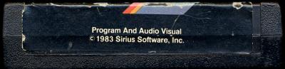 version a) ©1983, black label, no border, drawn picture, CART: no Fox logo, EL: ©1983 Sirius Software Inc., no name