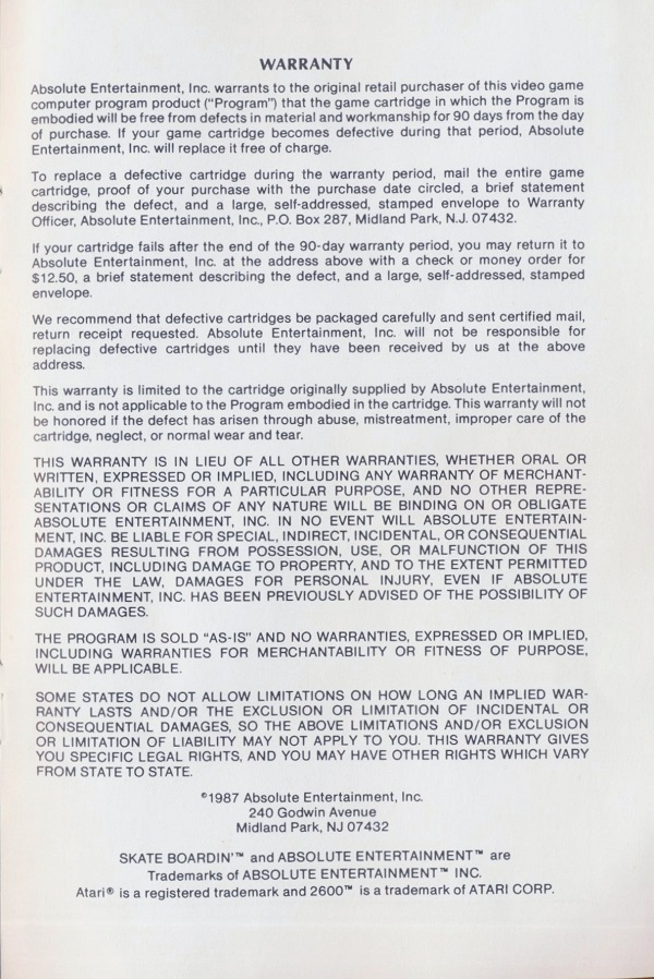 Skate Boardin' Manual A) ©1987, white, AG-043-02 (Error product #) on back, 8 pages, 4 x 6”, no printed or Rev
