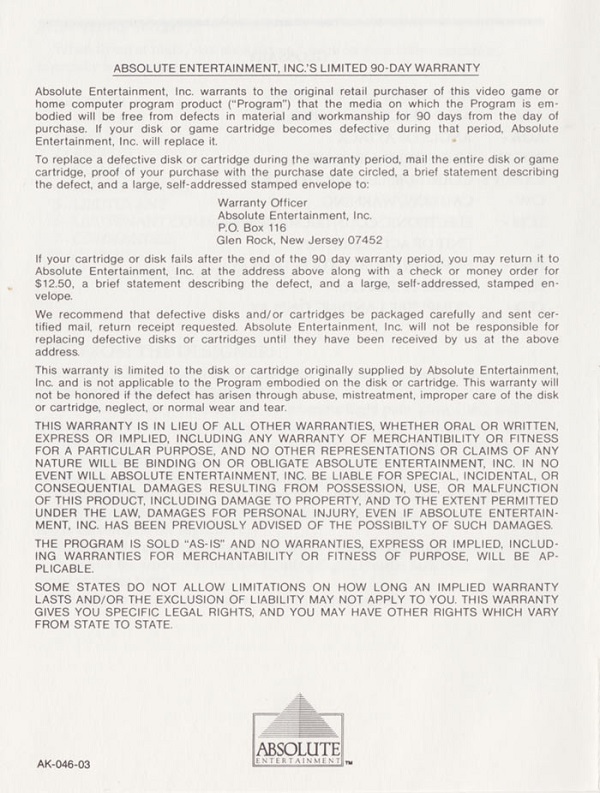 MANUAL A) no ©, white paper, AK-046-03 on back, 12 pages, 5.25 x 7”, no printed or Rev