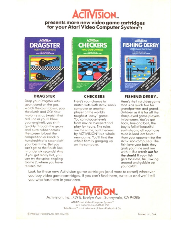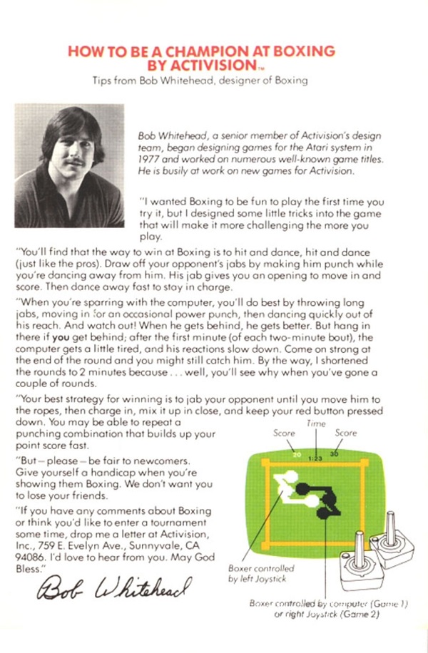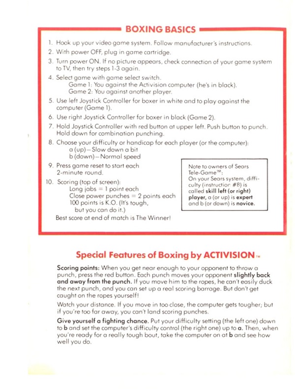 Boxing Manual A ©1980, white, AG-002-03 on back, 4 pages, 4.75 x 6.75”, Printed in USA, no Rev, 4/80, “Look for these new Activision…” on back,Sunnyvale address
