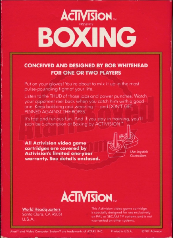©1981, red box, Boxing / La Boxe on box, sticker covering total front and back,