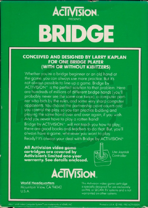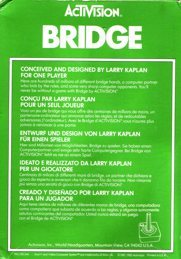 6) ©1980,1982, green box, International Edition, front bottom sticker in German, Printed in USA, “for use exclusively on PAL or SECAM... ” on back of box Front