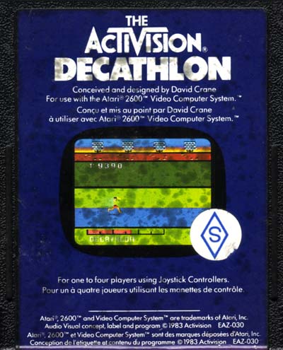 version d)* R ©1983, blue label, ML: English/French, EAZ-030, circular sticker with blue “S” on it inside a diamond (SECAM), CART: spring?