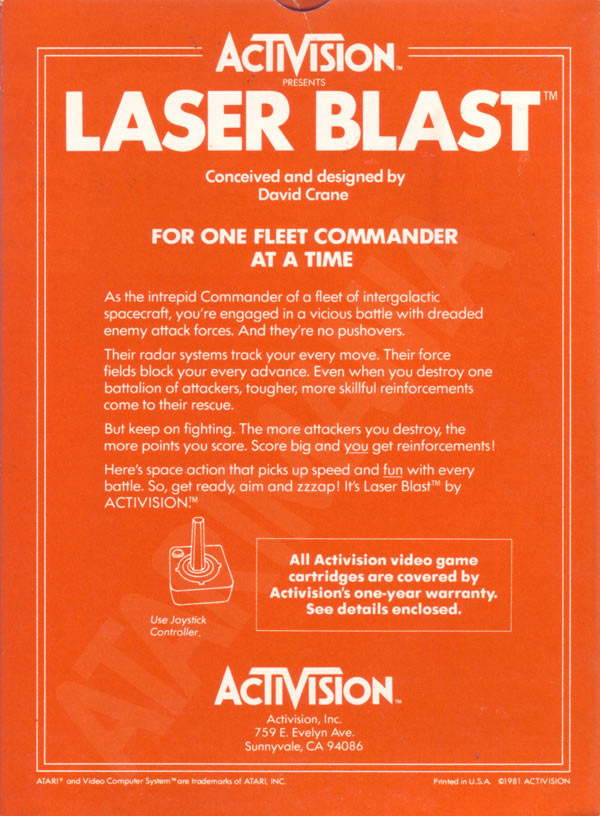 2) ©1981, orange box, “A new game cartridge for your Atari video game system”, Printed in USA, Santa Clara address on back, Rev 2 on flap, “SUS” 6/81, 8/81 on tiny flap