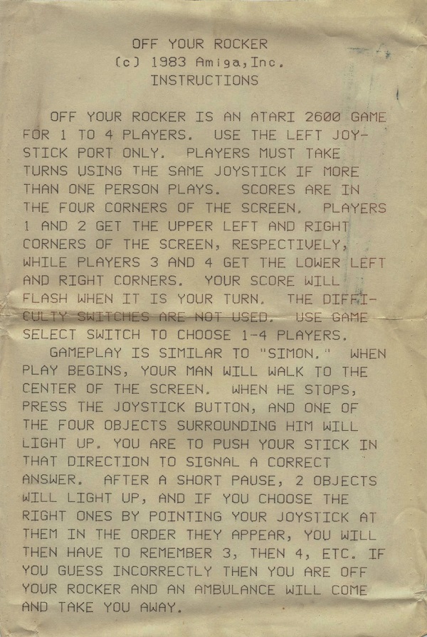 Off Your Rocker Manuals
