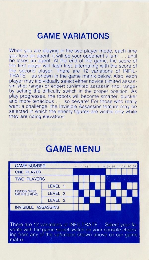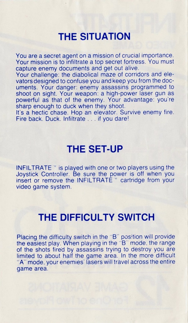 Infiltrate Manual C no ©, white (stick letters), no product #, 6 pages (folds out), 4.675 x 6.125”