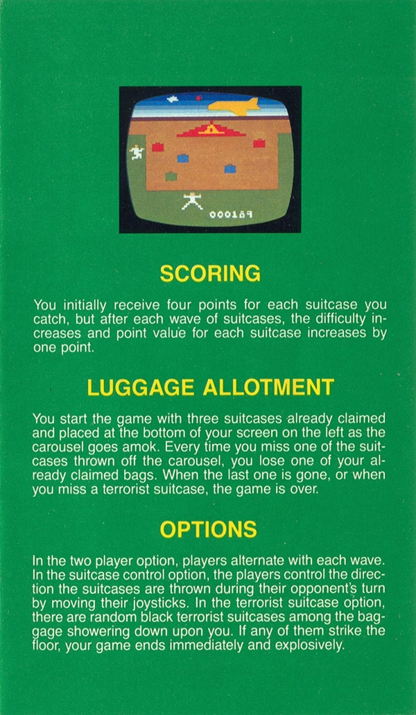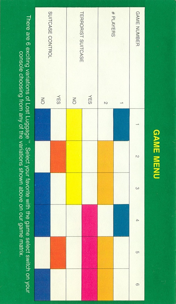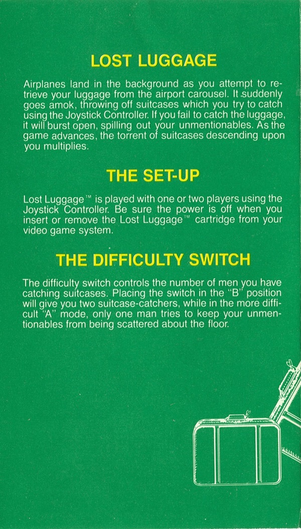 Lost Luggage Manual A ©1982, green (fancy letters), no product #, 6 pages (folds out), 3.75 x 6.375”