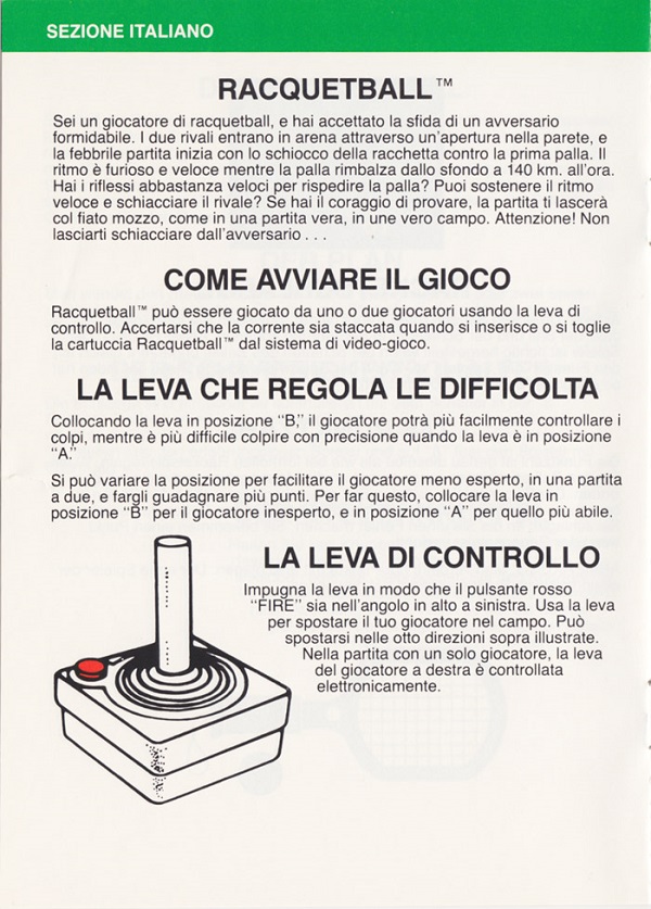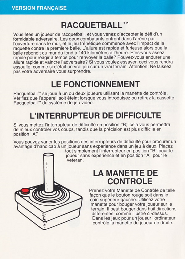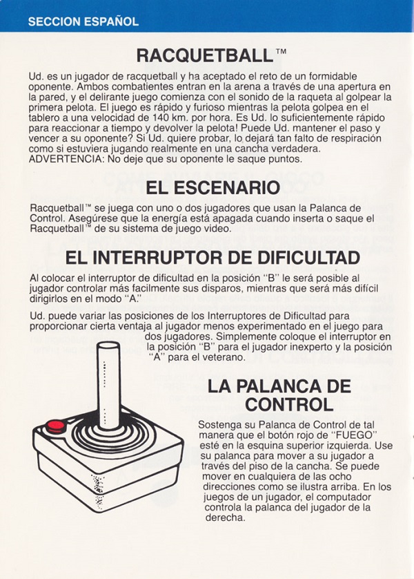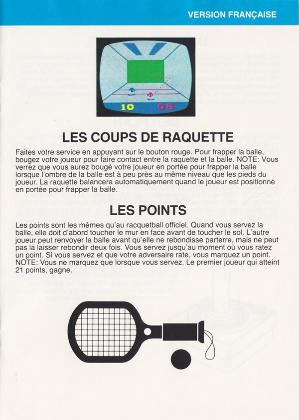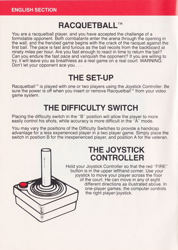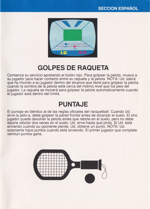 Racquetball Manual C ©1982, orange (fancy letters), no product #, 12 pages, 5 languages, size?”