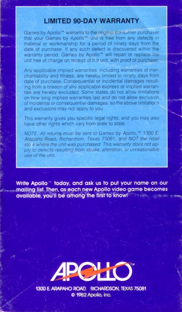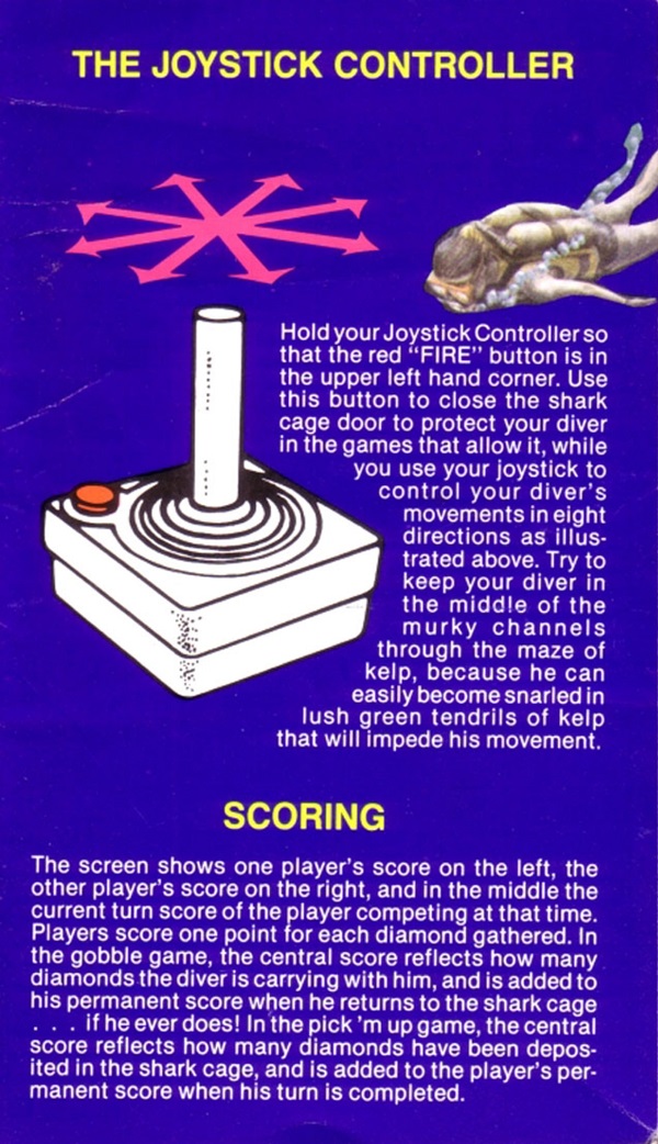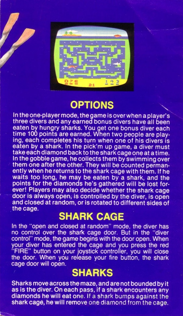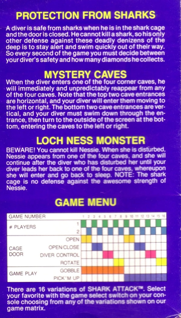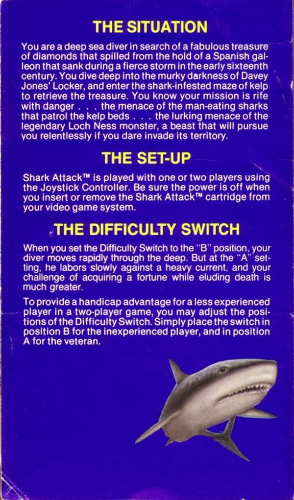 Shark Attack Manual B ©1982, blue (stick letters), no product #, 6 pages (folds out), 3.75 x 6.375”