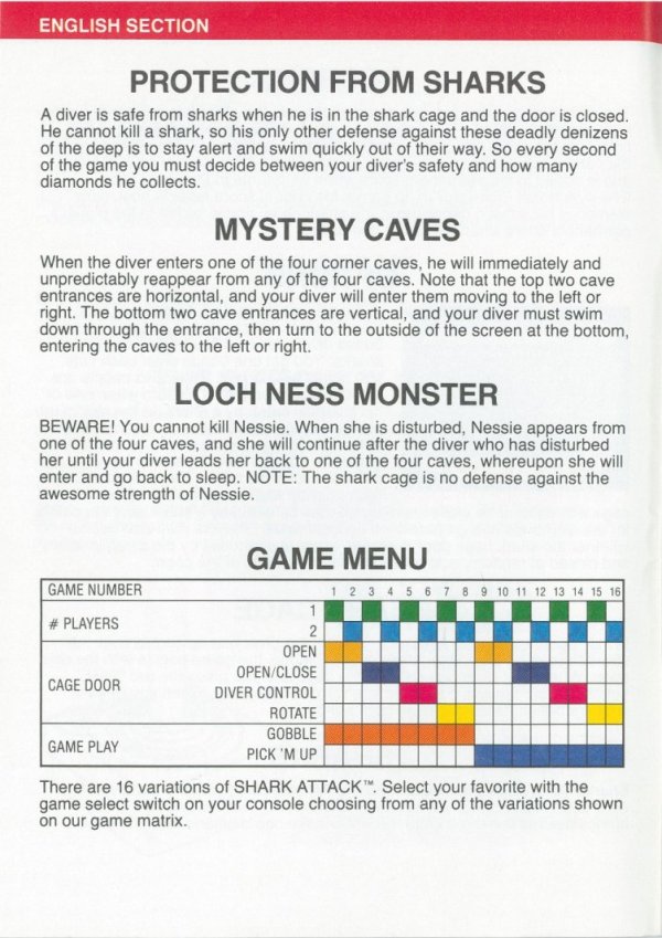Shark Attack Manual C no ©, blue (fancy letters), no product #, 20 pages, 5 languages, size?”