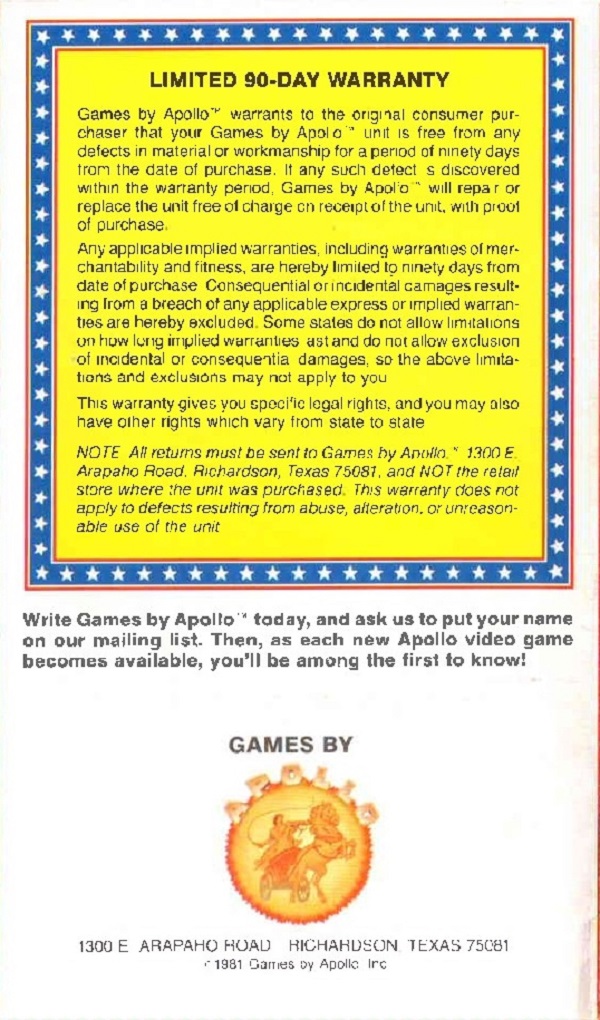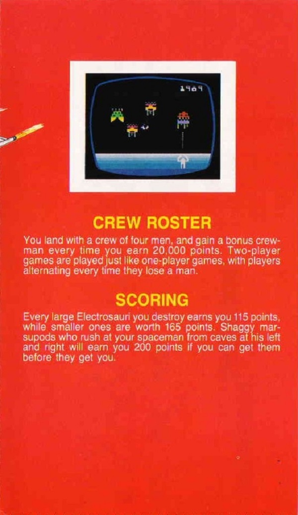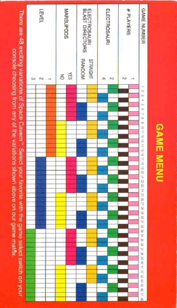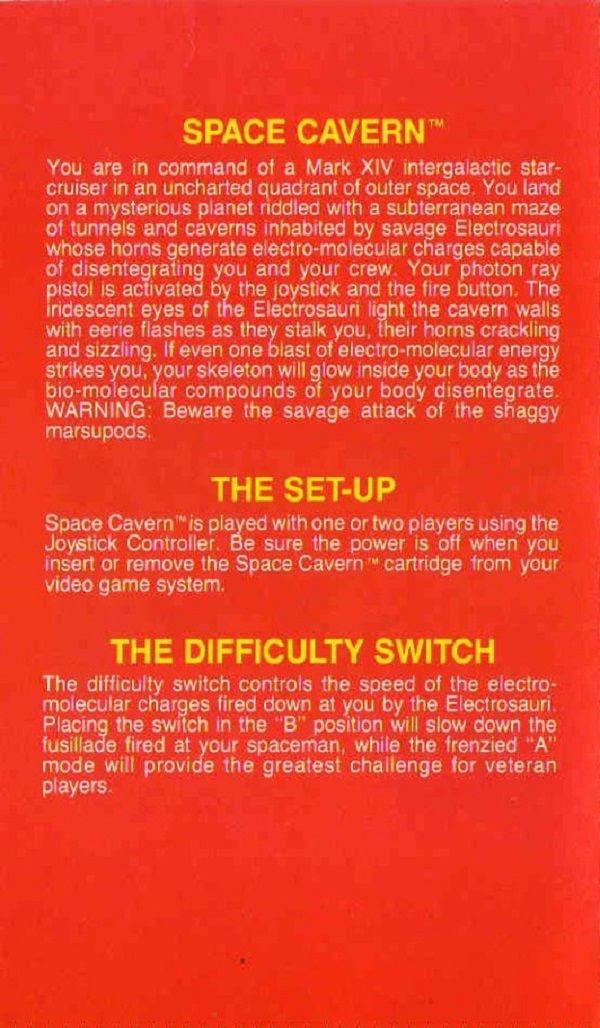 Space Cavern Manual A ©1981, red (fancy letters), no product #, 6 pages, 3.75 x 6.5”