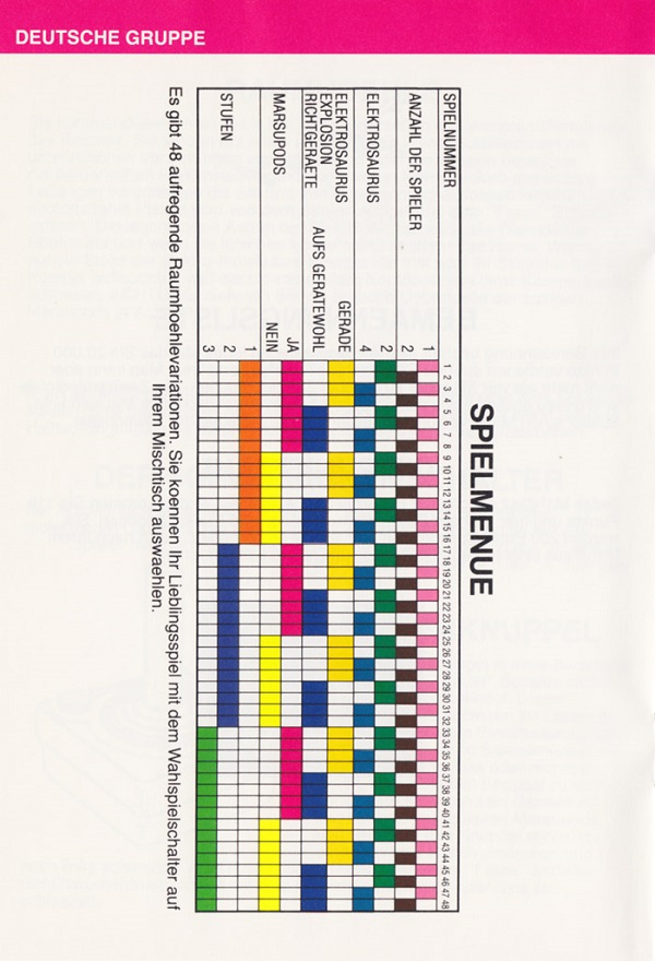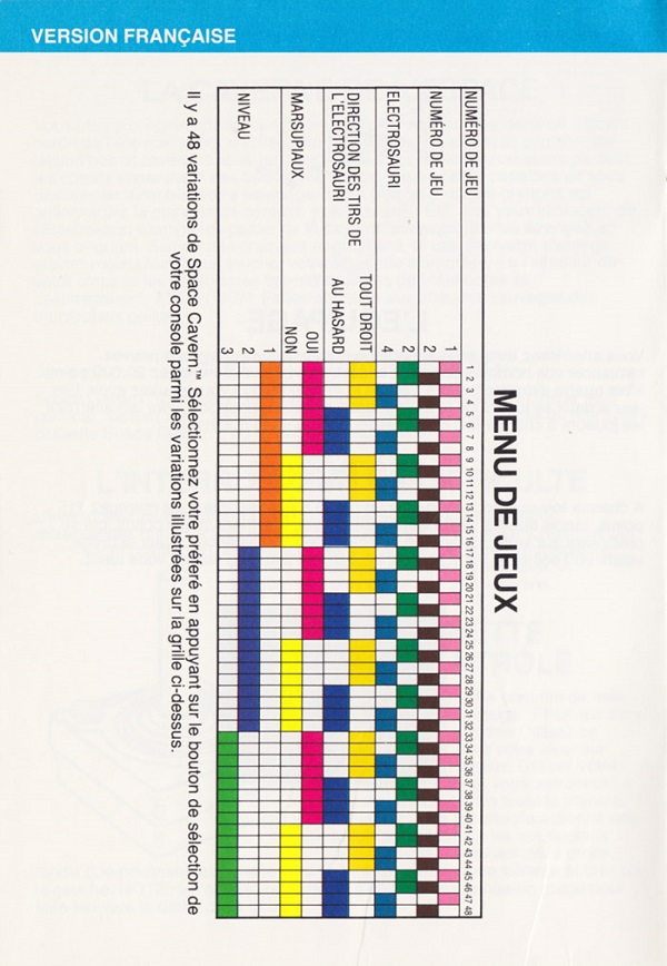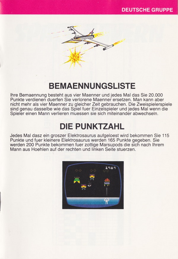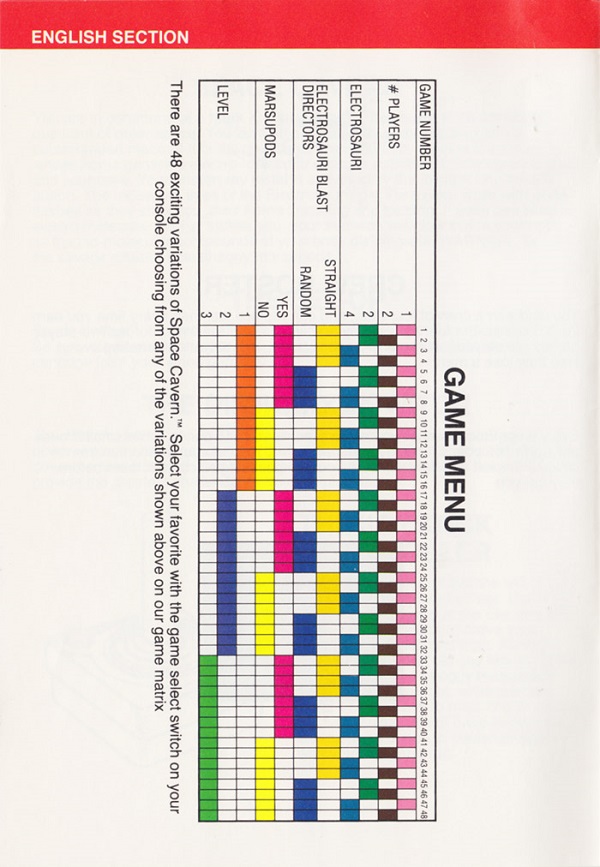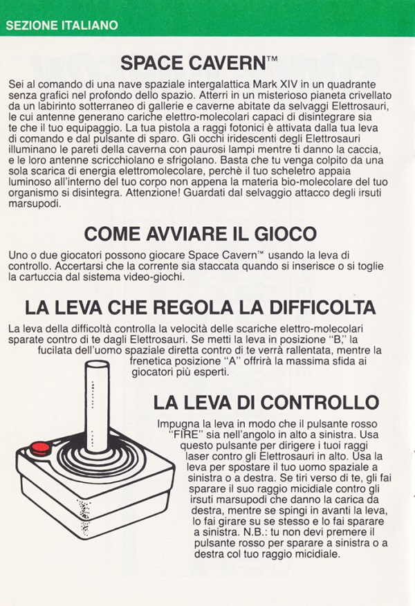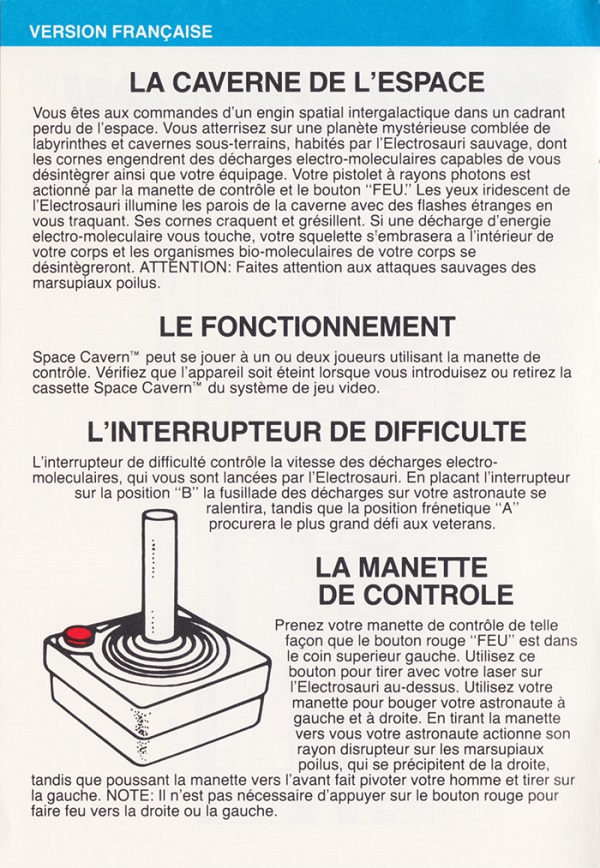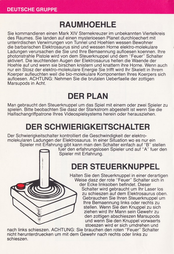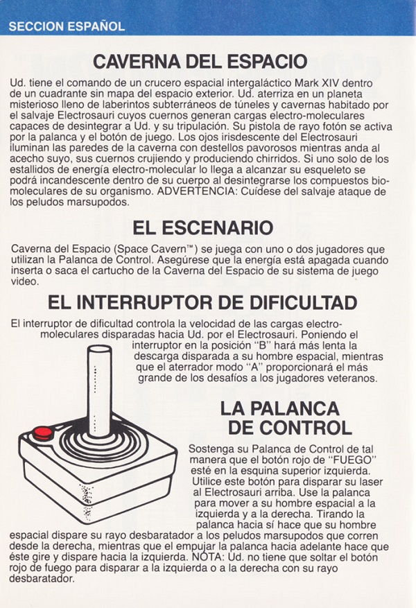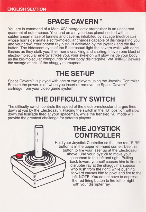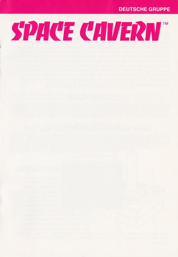 Space Cavern Manual D no ©, red (fancy letters), no product #, 20 pages, 5 languages, size?”