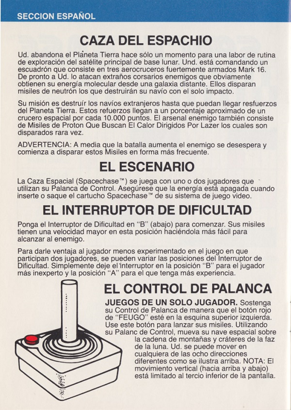 Spacechase Manual C no ©, light blue (fancy letters), no product #, 20 pages, 5 languages, size?”