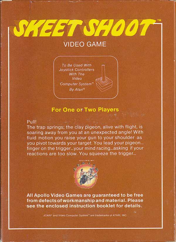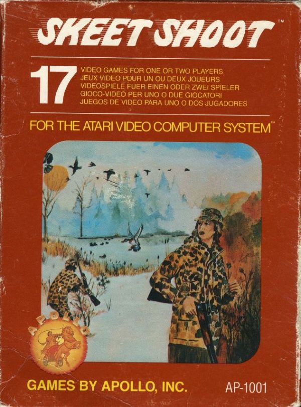 no ©, brown box with fancy letters, illustration of hunters, Apollo address on