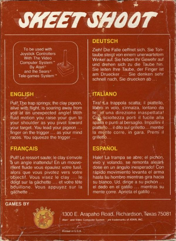 no ©, brown box with fancy letters, illustration of hunters, 5 languages on