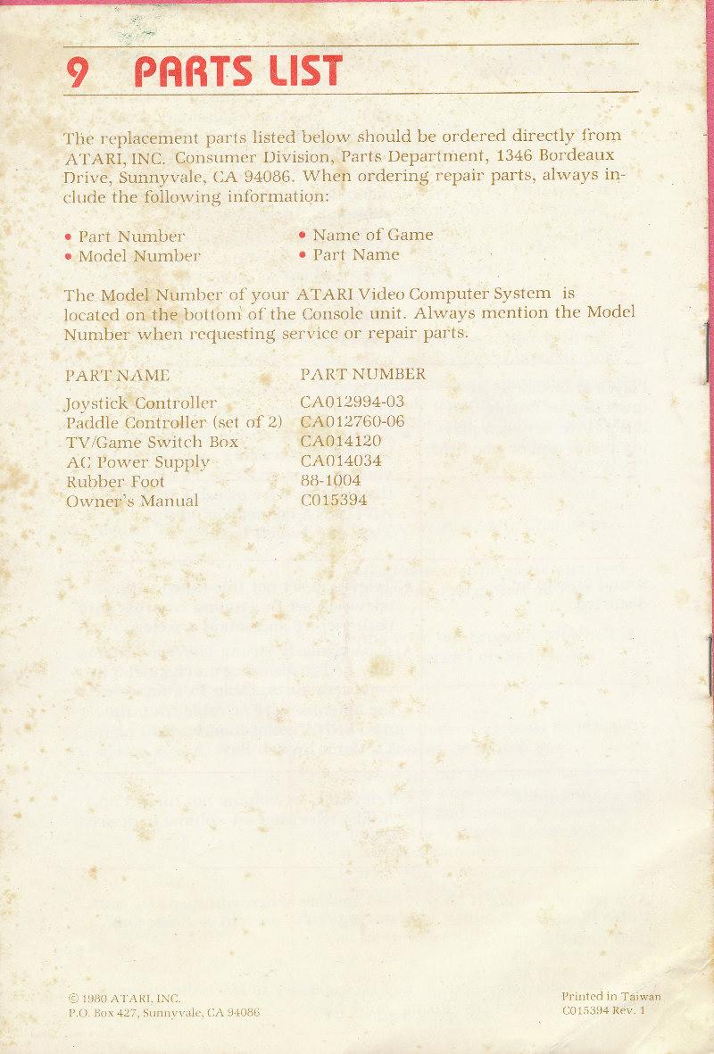 O8) ©1980, white with red lettering, CO15394 on back, 12 pages, 5.5 x 8.375”, Printed in Taiwan, Rev 1, Model CX2600A, 4-switch