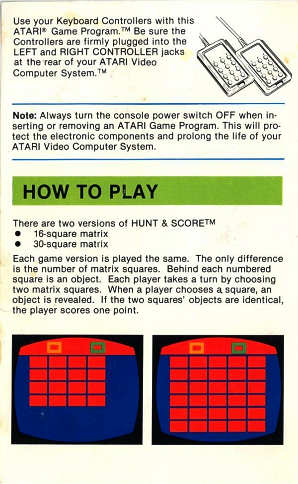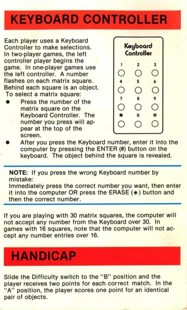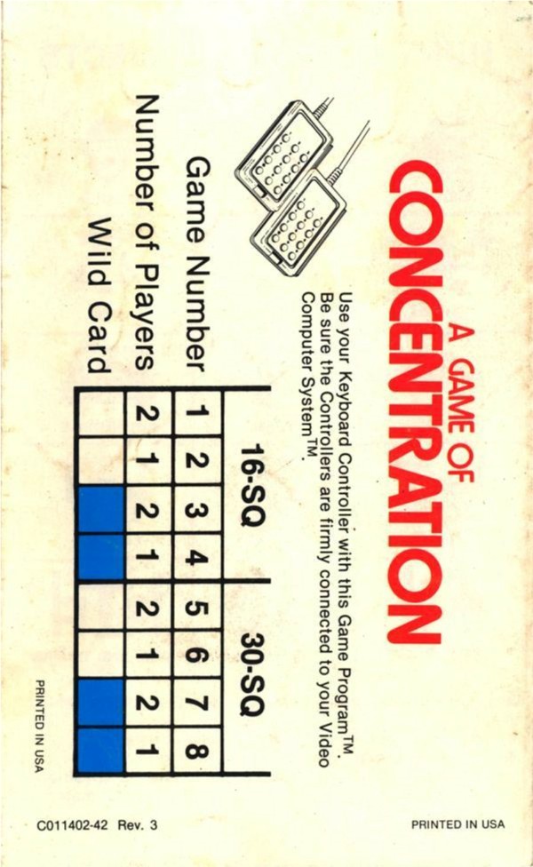 A Game of Concentration Manual A ©1978, black, C011402-42 on back, 6 pages, 4 x 6.5”, Printed in USA, Rev 3