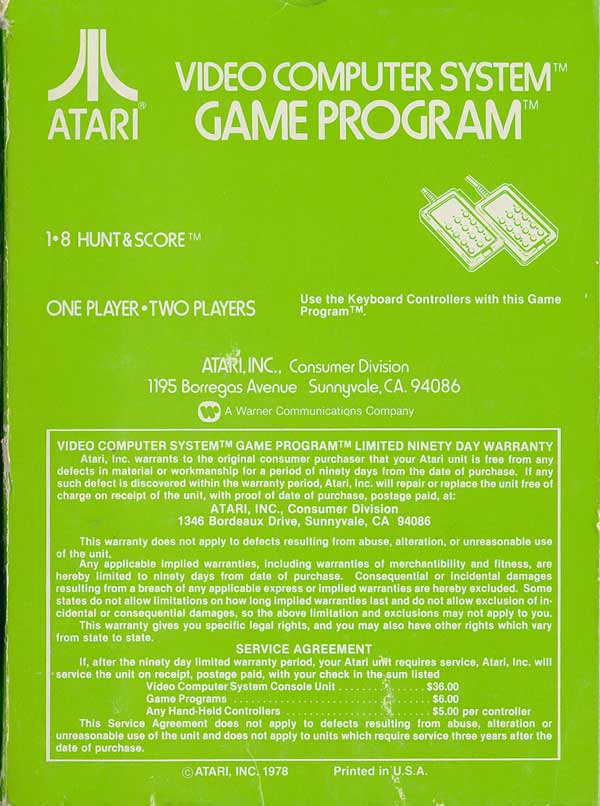 1) ©1978, light green box, light green warranty box, © outside warranty box, Rev?, Printed in USA, standard flap style box, “Bertco Graphics” 1/82 on tiny flap