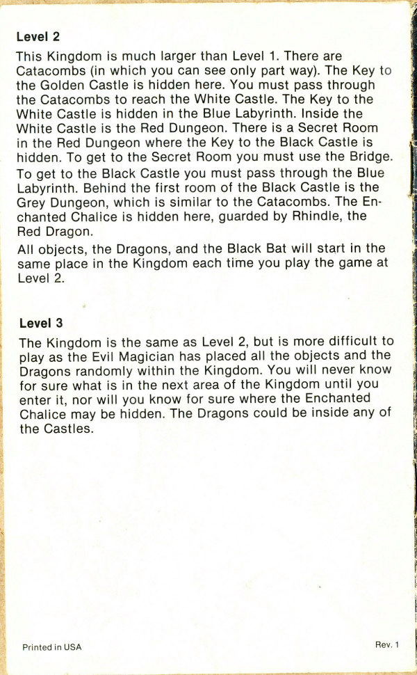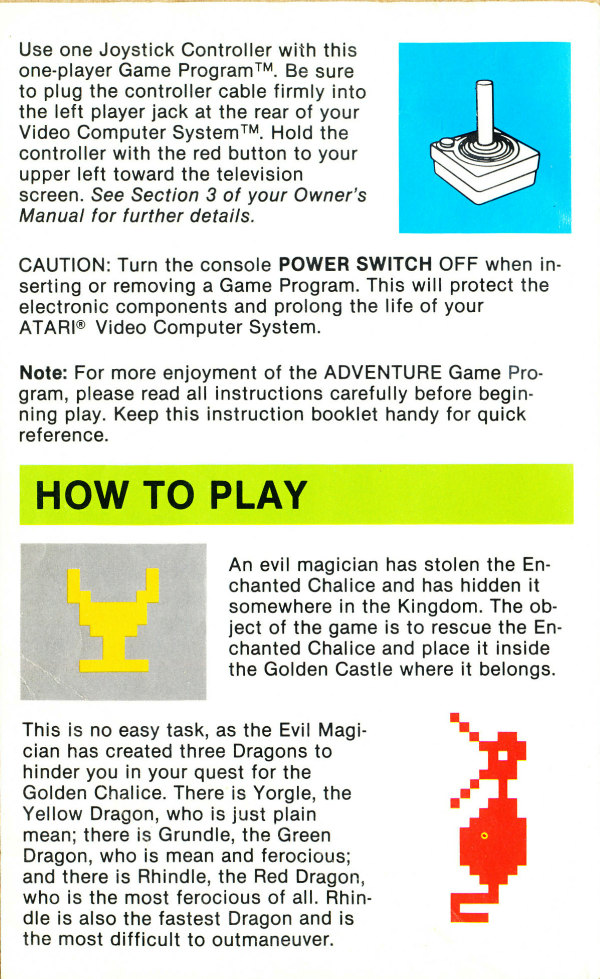 Adventure Manual A ©1980, black, C011402-13 on front, 8 pages, 4 x 6.5”, Printed in USA, Rev 1
