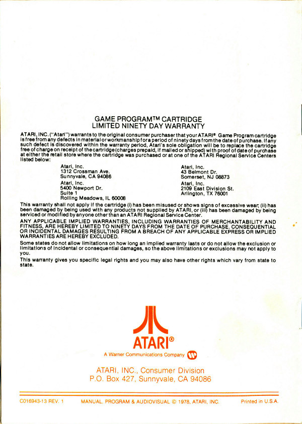 Adventure Manual C ©1978, white, C016943-13 on back, 12 pages, 5 x 7”, Printed in USA, Rev 1