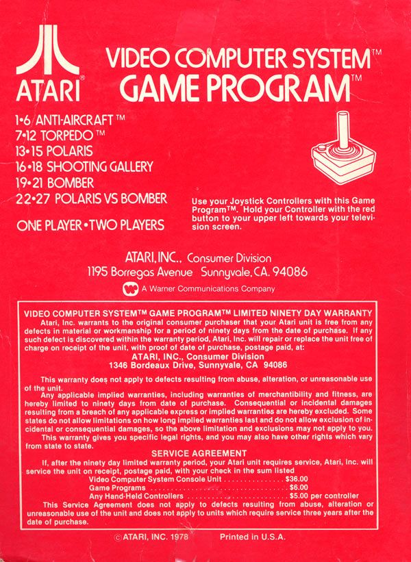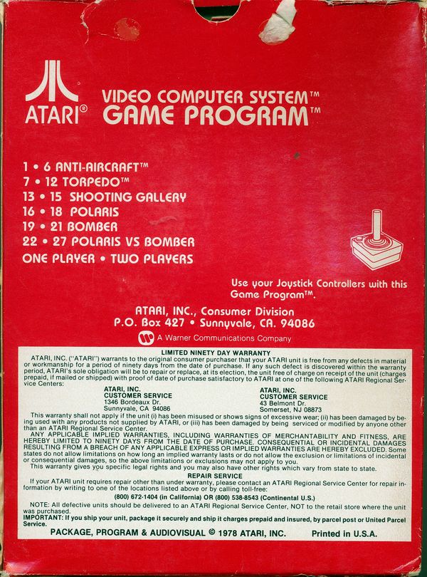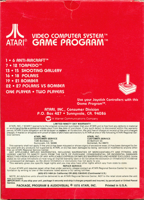 2) ©1978, red box, “Game Program” in large yellow letters in center, game options below that, no warranty info on back, Printed in USA, standard flap style box, “Bertco Graphics” 6/78, 7/78 on tiny flap; “Adpak San Francisco” (no date) on tiny flap Front