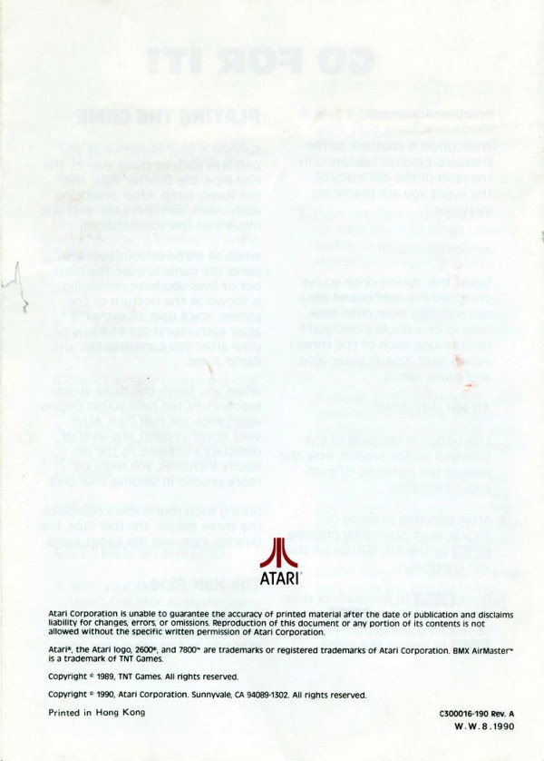 Manual A)* ©1990, white, C0300016-190 on back, 6 pages, size?, Printed in Hong Kong, Rev A