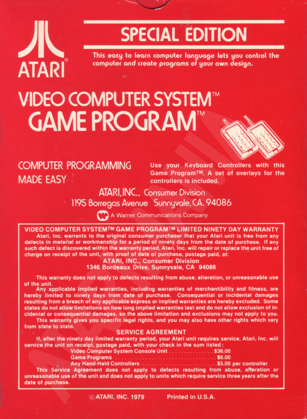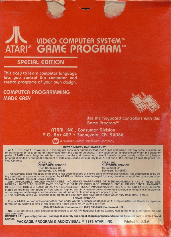 2) ©1979, orange-red box, white background warranty box, © inside warranty box, Rev 2 on flap, Printed in USA, glued flap style box, “Adpak San Francisco” 8/81 on tiny flap Front