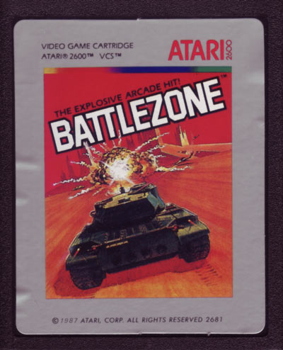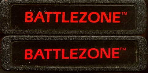 Battlezone Cartridges Below we have 2 end labels. The top one is paper, and the bottom is plastic, though from the scan, you pretty much can't tell that. There is a slight variation though with these labels. If you look at the ™, the top label is nice and even with the top part of the “E” while the bottom ™ is slightly higher than the “E”.