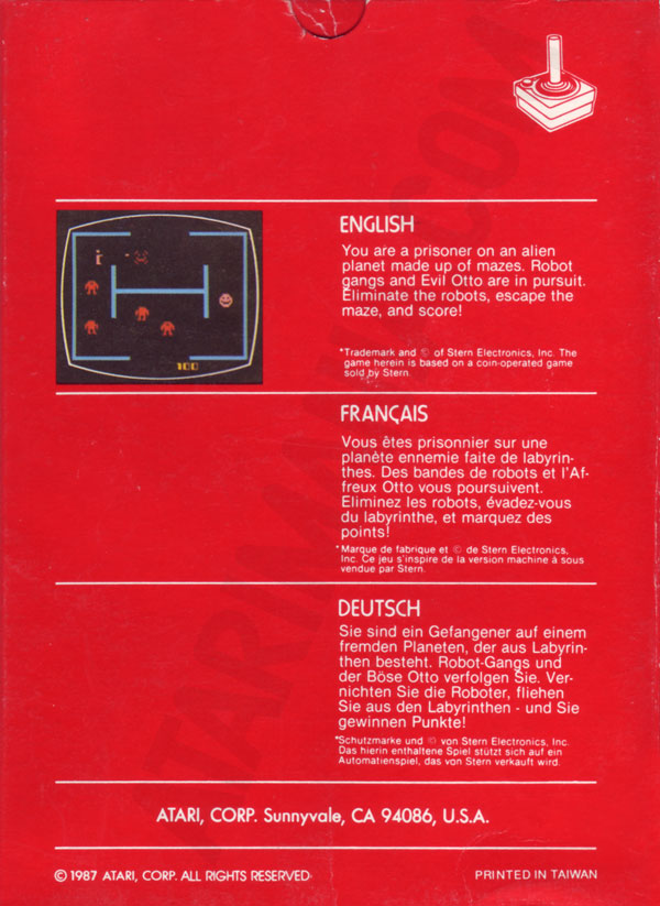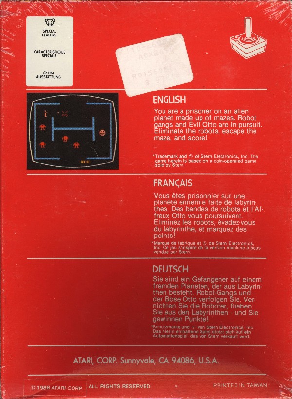 5) ©1986, red box, sticker: “©1986 Atari Corp.”, 3 languages, Printed in Taiwan Front
