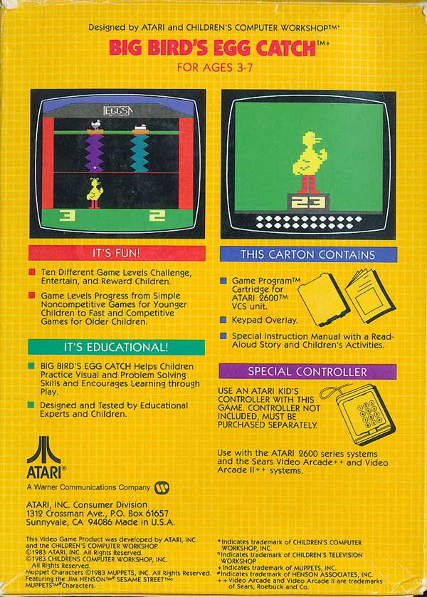 1) ©1983, yellow box, sticker: “Use with New Kid’s Controller” on front, Made in USA