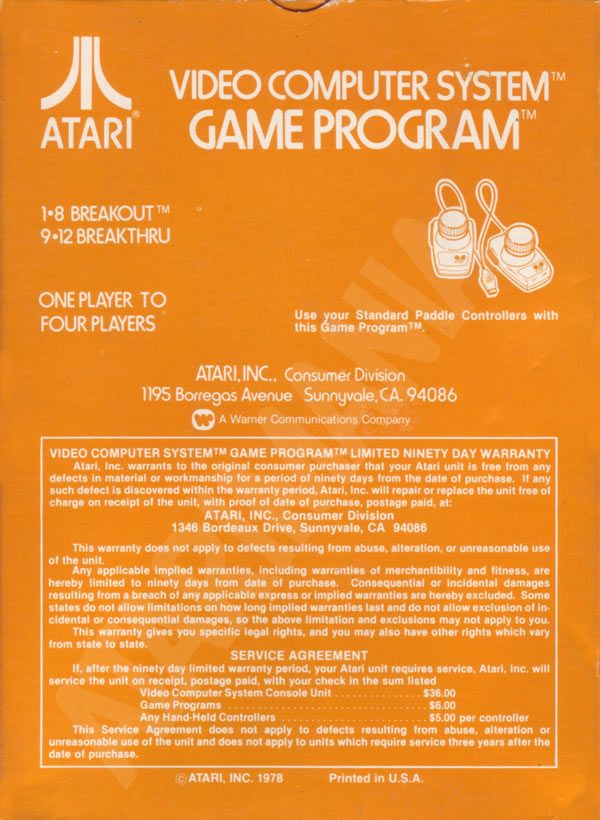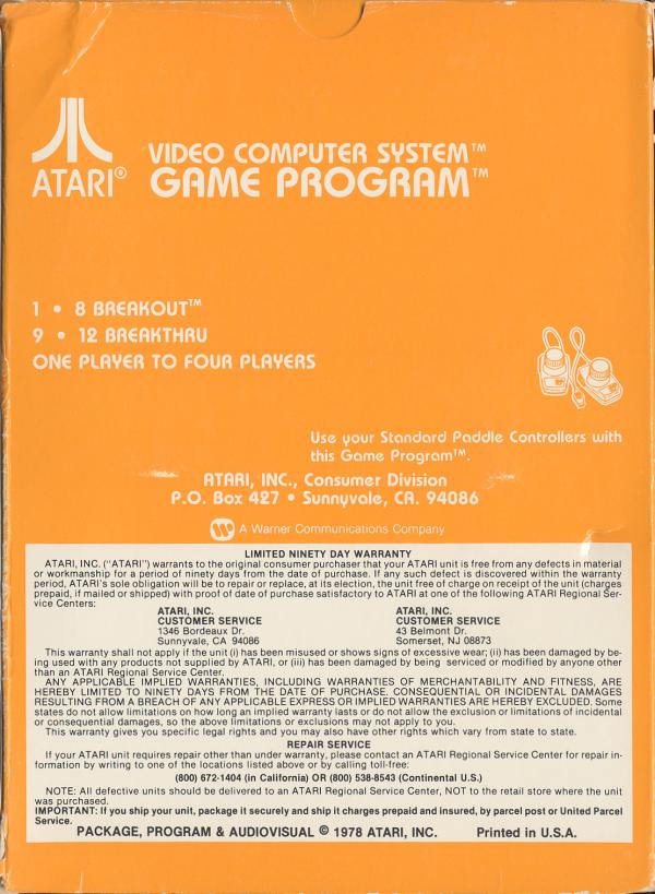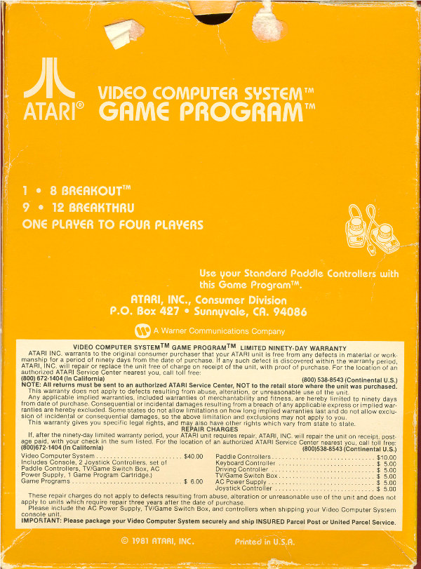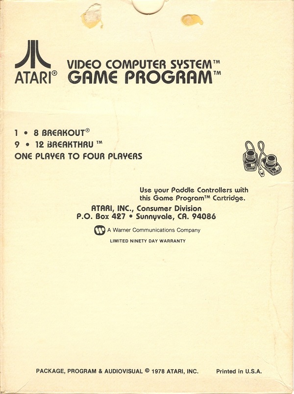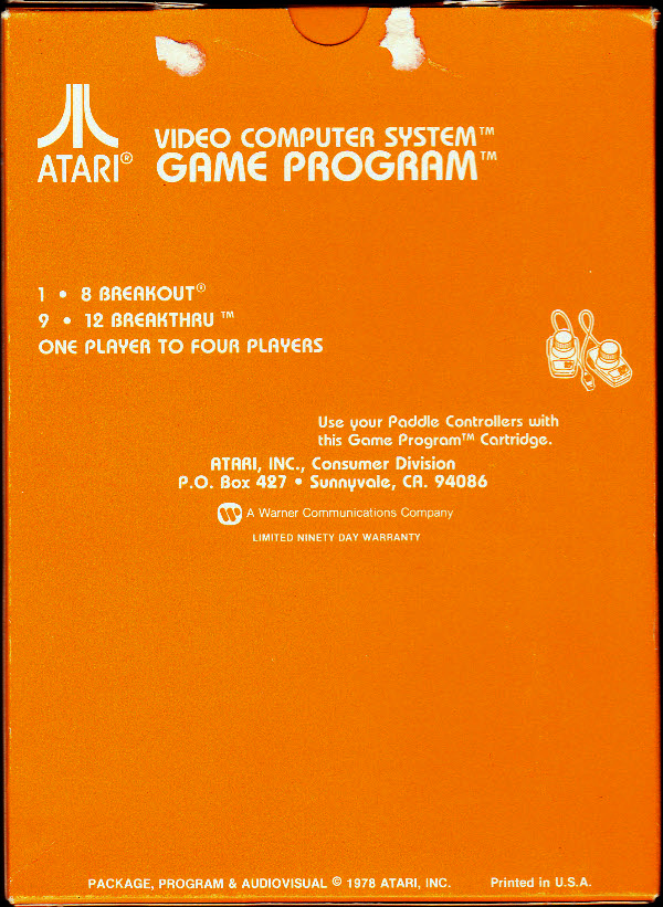 5) ©1978, yellow box, no warranty box, ® after title on front, no ™ after “Game Program” on front, “limited ninety day warranty” on back, Printed in USA, Rev 3 on flap, glued flap style box Front