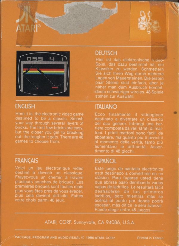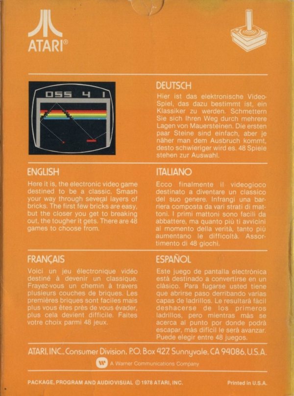 7) ©1978, orange box, 5 languages, Printed in USA, standard flap style box Front