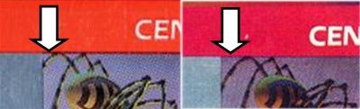 version b)* R PicSil1 ©1982, CART1, green shows very little on right side of centipede’s 3rd section, spider’s leg in upper left corner has two segments showing, cannot see top joint