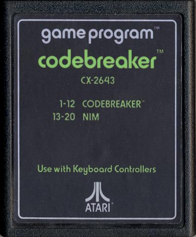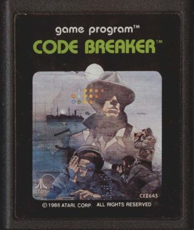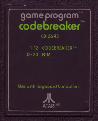 version g)* R PicBl ©1986, CART?, green text, no “use with…” line, EL: plastic, “Code Breaker” instead of “Codebreaker”