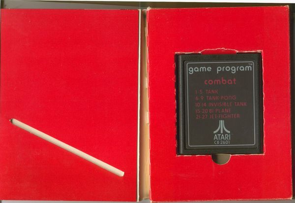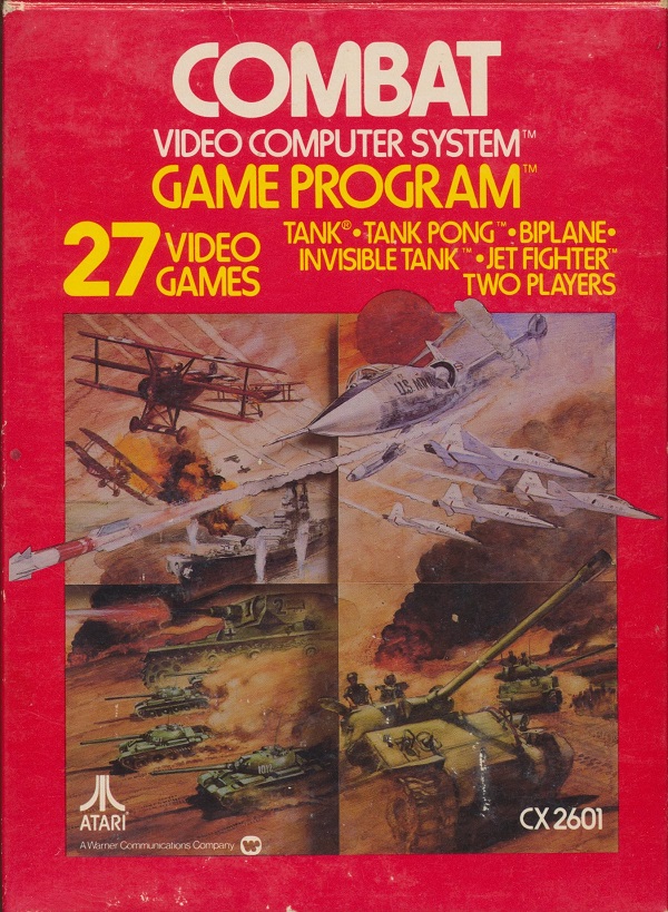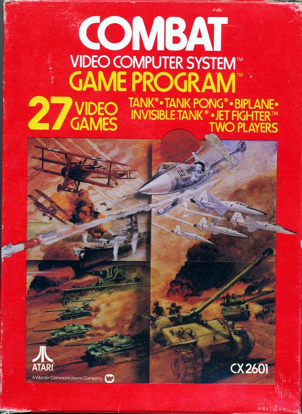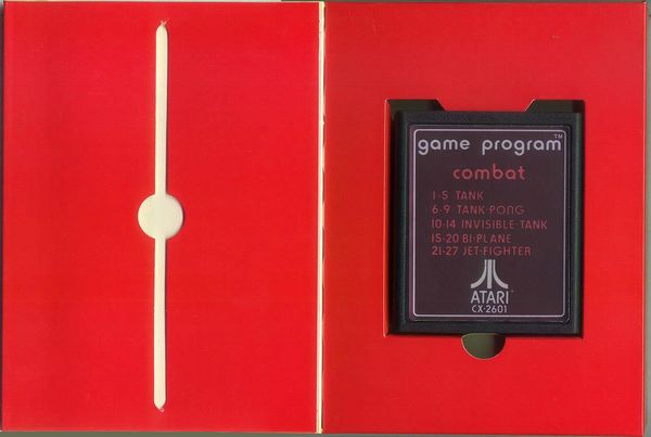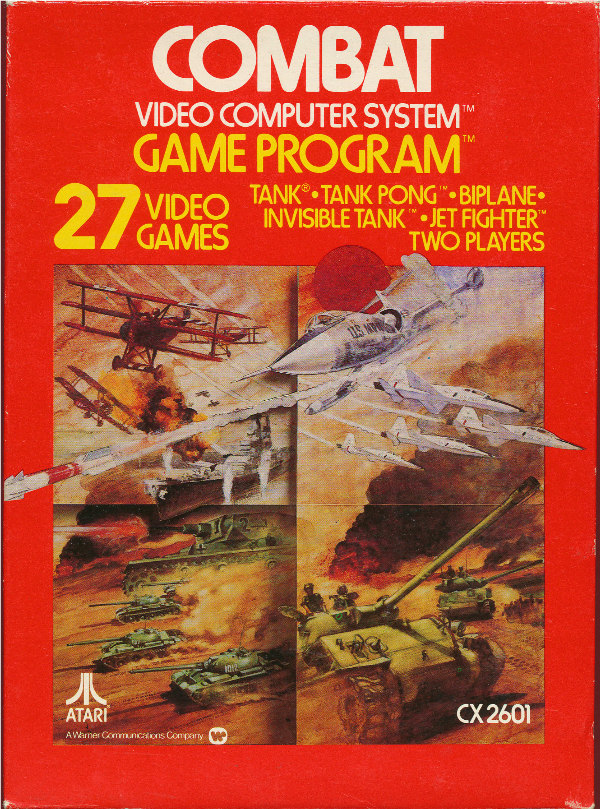 2) ©1977, red box, “combat 01” on side going up the box, front opening, no warranty box, instruction manual slot is horizontal on bottom, medium ® on Atari logo on back, Printed in USA, no printer or date on tiny flap Front