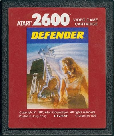 Defender Cartridges version a)* C PicBl ©1981, CART1, black border around CX2609, space ship totally visible