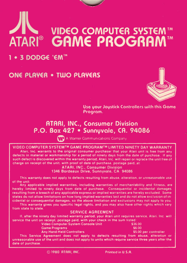 3) ©1980, pink box, white background warranty box, © inside warranty box, Printed in USA, Rev 2 on flap, glued flap style box, “Bertco Graphics” 6/81 on tiny flap Front