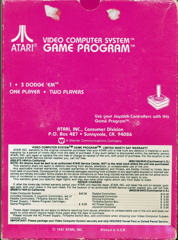 ©1981, pink box, white background warranty box, © outside warranty box, Printed in Front