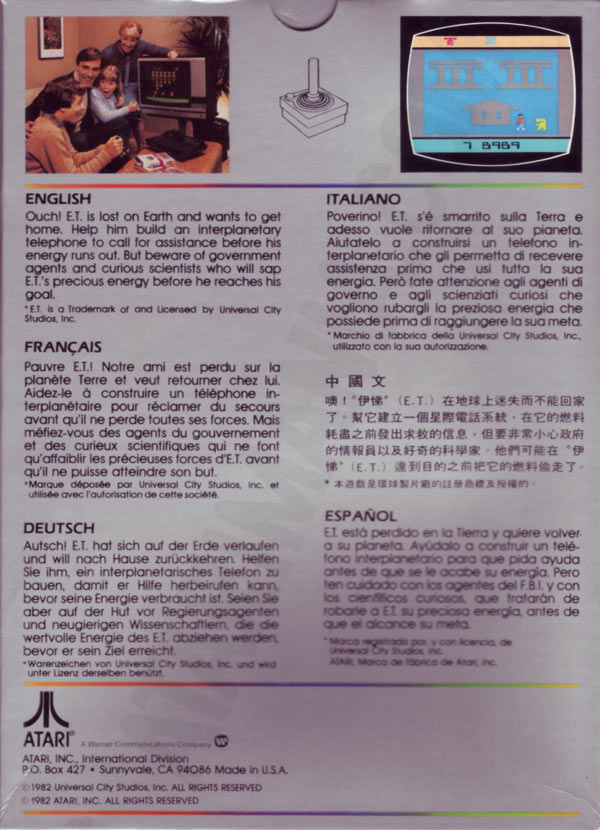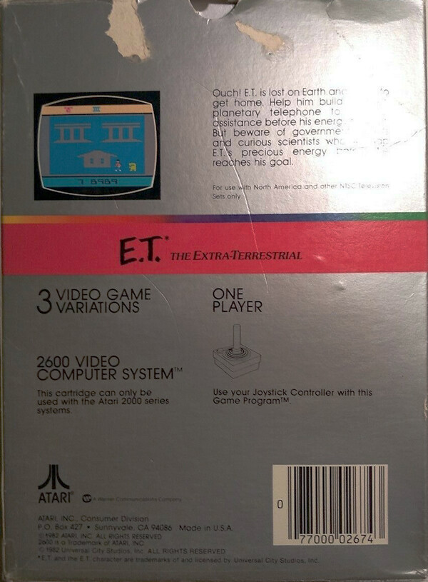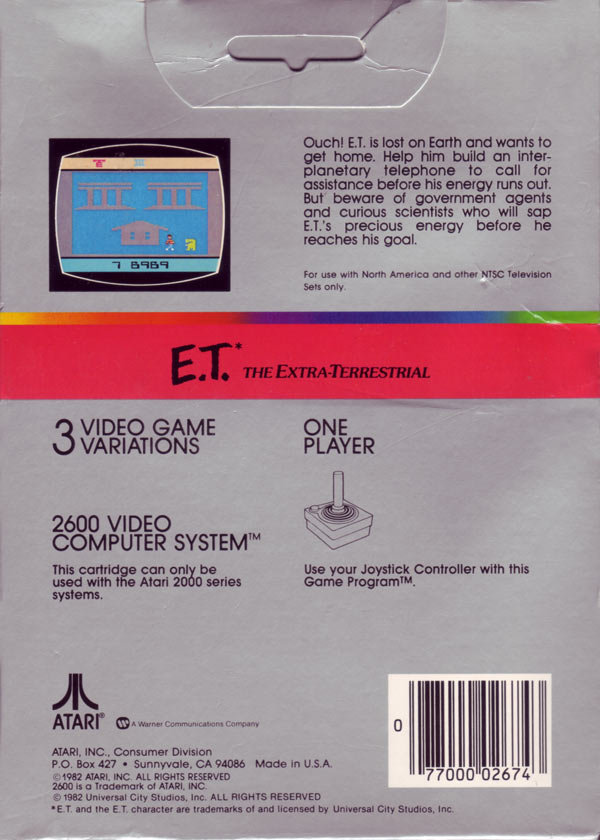 2) ©1982, silver box, sticker: “A Tip From E.T....”, Made in USA, Rev? on flap, glued flap style box, printer? Front