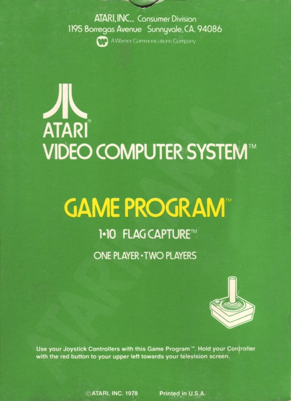 Flag Capture Boxes 1) ©1978, green box, “Game Program” in large yellow letters in center, game options below that, no warranty info on back, Printed in USA, “Fidelity Packaging Corporation” (no date) on tiny flap; “Bertco Graphics” 7/78 on tiny flap Front