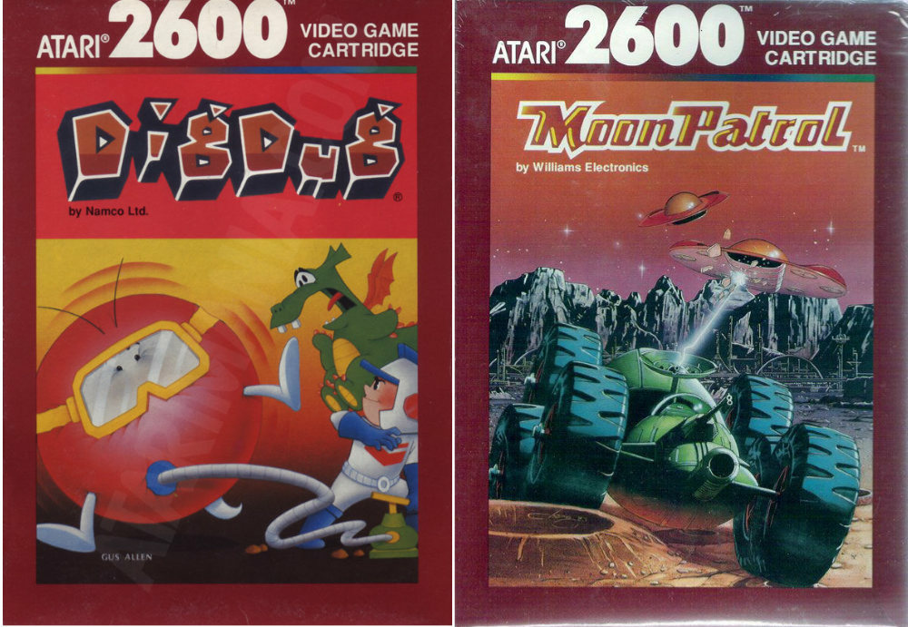 Atari also re-released many games in the red box like was discussed above. Confirmed games are Asteroids, Battlezone, Basketball, Defender, Dig Dug, Dodge 'Em, Galaxian, Gravitar, Joust, Jungle Hunt, Kangaroo, Mario Bros., Millipede, Missile Command, Moon Patrol, Ms. Pac-Man, Phoenix, Pole Position, Realsports Soccer, Realsports Tennis, Realsports Volleyball, Space Invaders, Vanguard, and Yars' Revenge.
